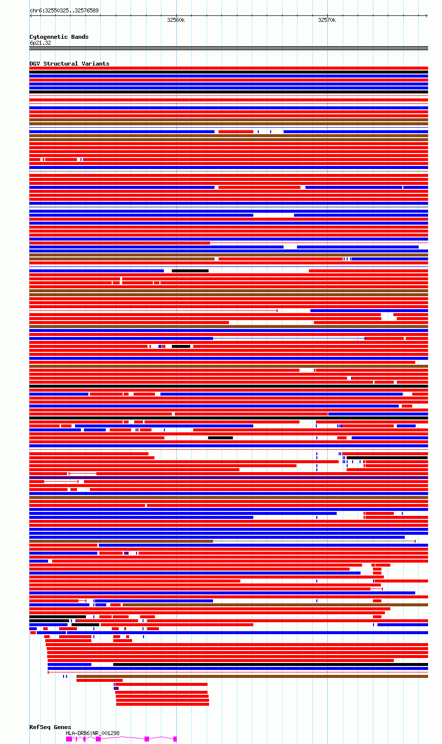 Variant DetailsVariant: essv6778178| Internal ID | 10183841 | | Landmark | | | Location Information | | | Cytoband | 6p21.32 | | Allele length | | Assembly | Allele length | | hg38 | 26265 | | hg19 | 26265 |