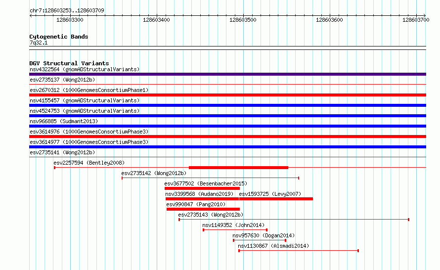 Variant DetailsVariant: essv6778551| Internal ID | 9837492 | | Landmark | | | Location Information | | | Cytoband | 7q32.1 | | Allele length | | Assembly | Allele length | | hg38 | 457 | | hg19 | 457 |