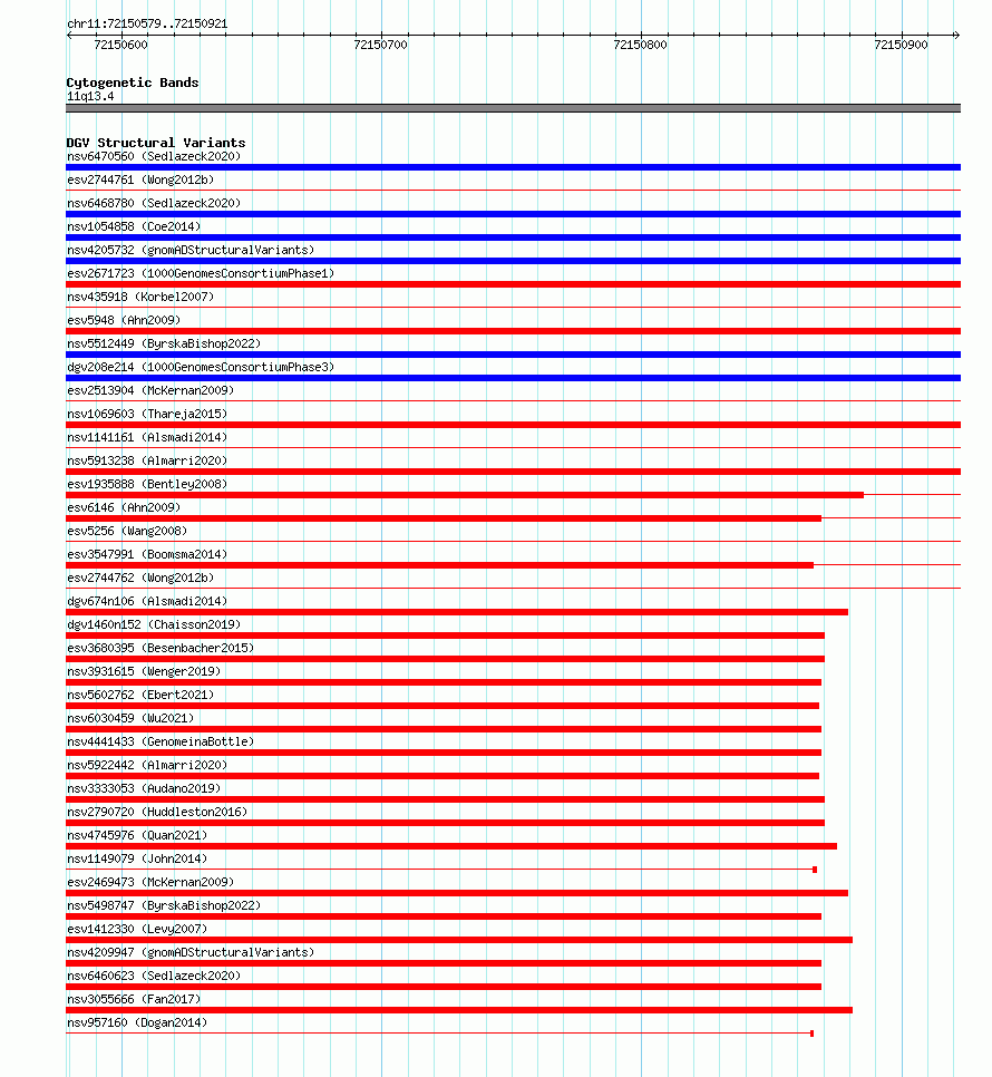 Variant DetailsVariant: essv6779359| Internal ID | 10184905 | | Landmark | | | Location Information | | | Cytoband | 11q13.4 | | Allele length | | Assembly | Allele length | | hg38 | 343 | | hg19 | 343 |