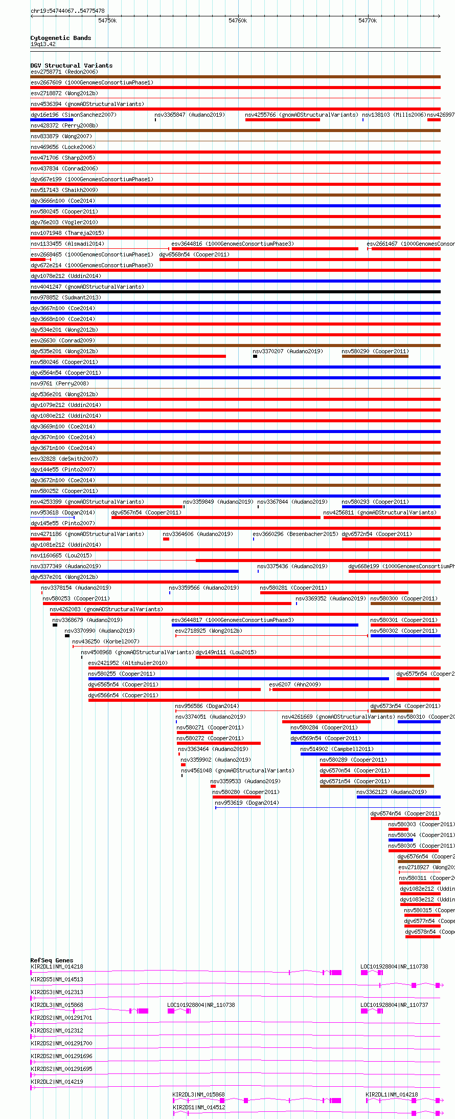 | | Variant Type | CNV deletion | | Copy Number | | | Allele State | | | Allele Origin | | | Probe Count | | | Validation Flag | | | Merged Status | S | | Merged Variants | esv2718920, esv2718872, esv2718911, esv2718921, esv2718913 | | Supporting Variants | | | Samples | SSM067 | | Known Genes | KIR2DL1, KIR2DL3 | | Method | Sequencing | | Analysis | Breakdancer:4 times standard deviation,VariationHunter:4 times standard deviation and at least 3 supportting reads | | Platform | Illumina HiSeq 2000 | | Comments | | | Reference | Wong_et_al_2012b | | Pubmed ID | 23290073 | | Accession Number(s) | essv6780560
