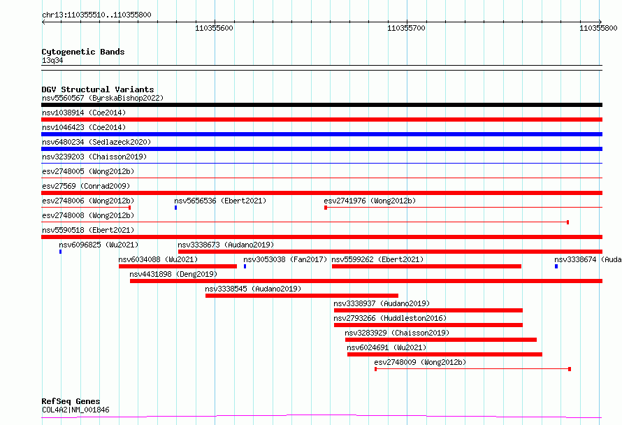 | | Variant Type | CNV deletion | | Copy Number | | | Allele State | | | Allele Origin | | | Probe Count | | | Validation Flag | | | Merged Status | S | | Merged Variants | esv2748008, esv2748005 | | Supporting Variants | | | Samples | SSM068 | | Known Genes | COL4A2 | | Method | Sequencing | | Analysis | Breakdancer:4 times standard deviation,VariationHunter:4 times standard deviation and at least 3 supportting reads | | Platform | Illumina HiSeq 2000 | | Comments | | | Reference | Wong_et_al_2012b | | Pubmed ID | 23290073 | | Accession Number(s) | essv6783773