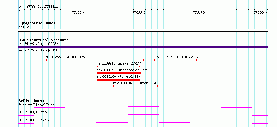 Variant DetailsVariant: essv6785803| Internal ID | 9844019 | | Landmark | | | Location Information | | | Cytoband | 4p16.1 | | Allele length | | Assembly | Allele length | | hg38 | 411 | | hg19 | 411 |