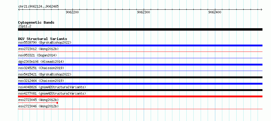 Variant DetailsVariant: essv6788986| Internal ID | 10193004 | | Landmark | | | Location Information | | | Cytoband | 21p11.2 | | Allele length | | Assembly | Allele length | | hg38 | 342 | | hg19 | 342 |
