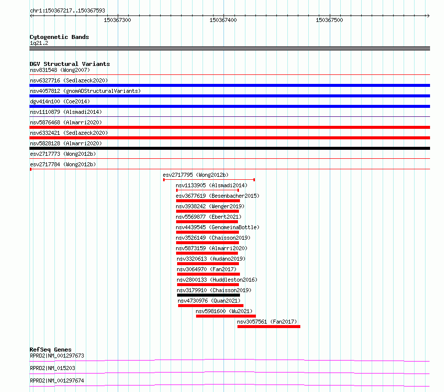 Variant DetailsVariant: essv6789251| Internal ID | 10195258 | | Landmark | | | Location Information | | | Cytoband | 1q21.3 | | Allele length | | Assembly | Allele length | | hg38 | 377 | | hg19 | 377 |