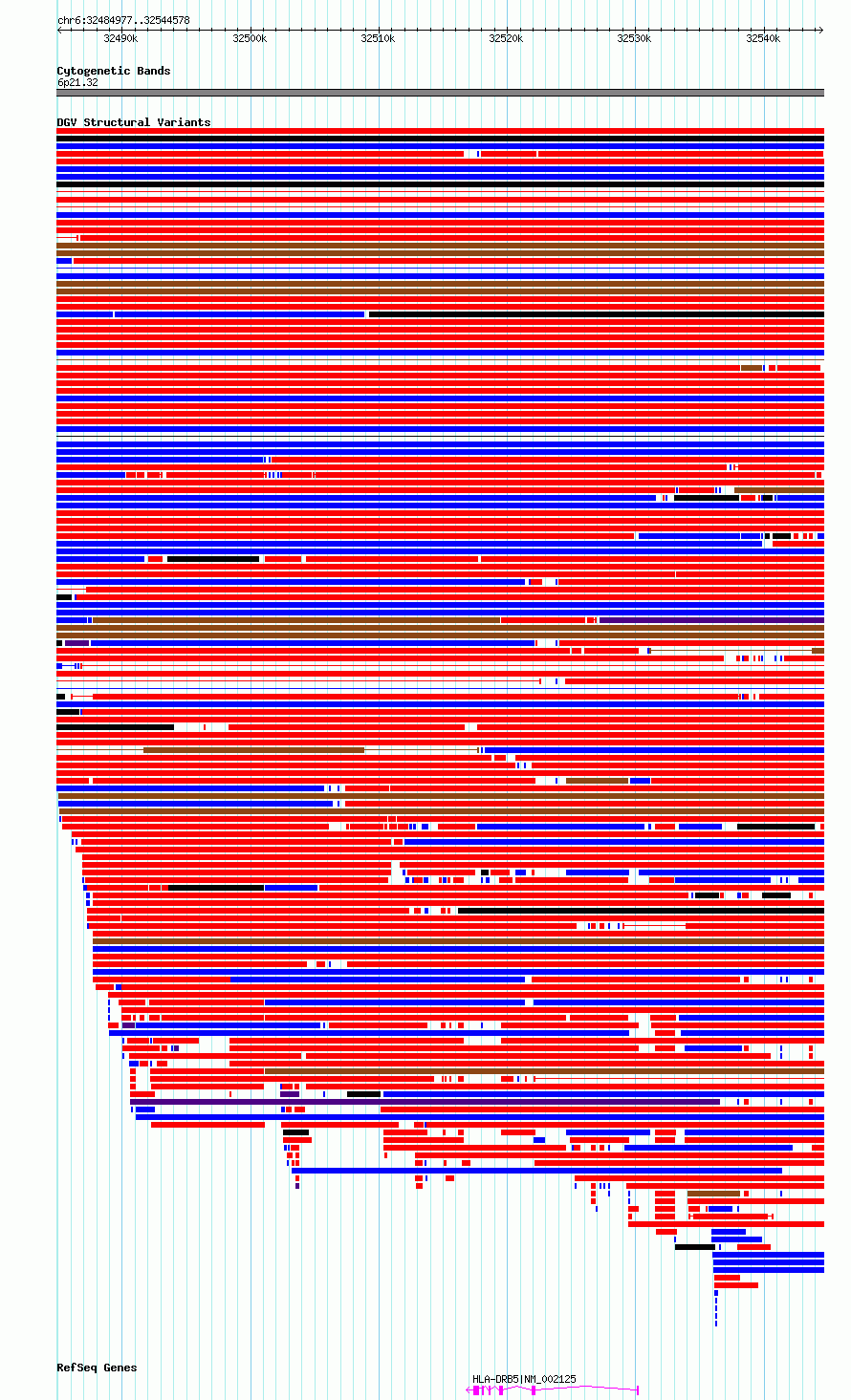 Variant DetailsVariant: essv6790482| Internal ID | 10197170 | | Landmark | | | Location Information | | | Cytoband | 6p21.32 | | Allele length | | Assembly | Allele length | | hg38 | 59602 | | hg19 | 59602 |