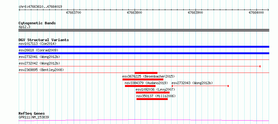 Variant DetailsVariant: essv6790528| Internal ID | 9850412 | | Landmark | | | Location Information | | | Cytoband | 6p12.3 | | Allele length | | Assembly | Allele length | | hg38 | 410 | | hg19 | 410 |