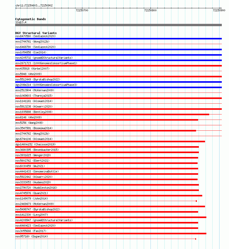 Variant DetailsVariant: essv6791758| Internal ID | 10195169 | | Landmark | | | Location Information | | | Cytoband | 11q13.4 | | Allele length | | Assembly | Allele length | | hg38 | 300 | | hg19 | 300 |