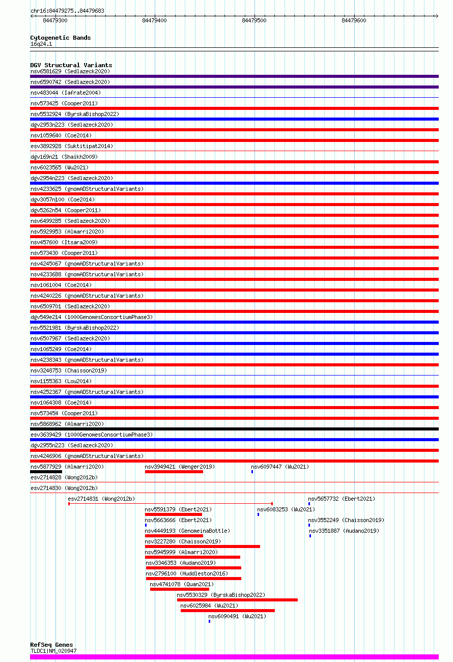 Variant DetailsVariant: essv6792464| Internal ID | 10196234 | | Landmark | | | Location Information | | | Cytoband | 16q24.1 | | Allele length | | Assembly | Allele length | | hg38 | 409 | | hg19 | 409 |