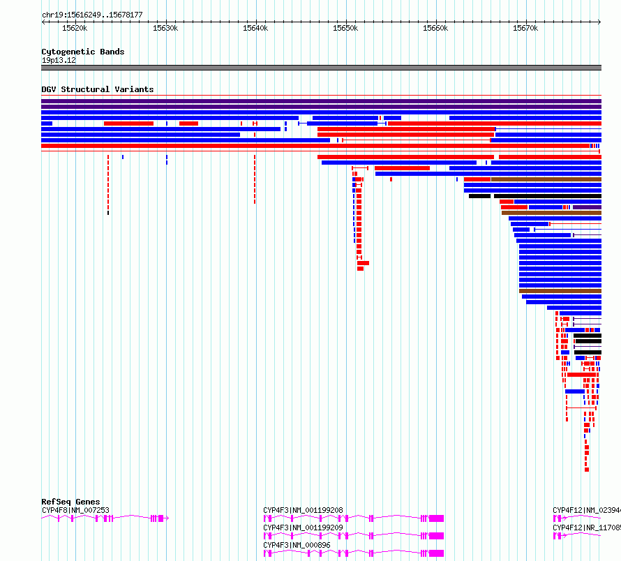 | | Variant Type | CNV deletion | | Copy Number | | | Allele State | | | Allele Origin | | | Probe Count | | | Validation Flag | | | Merged Status | S | | Merged Variants | esv2718235 | | Supporting Variants | | | Samples | SSM070 | | Known Genes | CYP4F12, CYP4F3, CYP4F8 | | Method | Sequencing | | Analysis | Breakdancer:4 times standard deviation,VariationHunter:4 times standard deviation and at least 3 supportting reads | | Platform | Illumina HiSeq 2000 | | Comments | | | Reference | Wong_et_al_2012b | | Pubmed ID | 23290073 | | Accession Number(s) | essv6792903