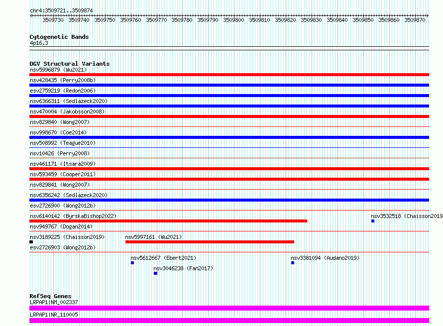 Variant DetailsVariant: essv6794064| Internal ID | 10200361 | | Landmark | | | Location Information | | | Cytoband | 4p16.3 | | Allele length | | Assembly | Allele length | | hg38 | 154 | | hg19 | 154 |