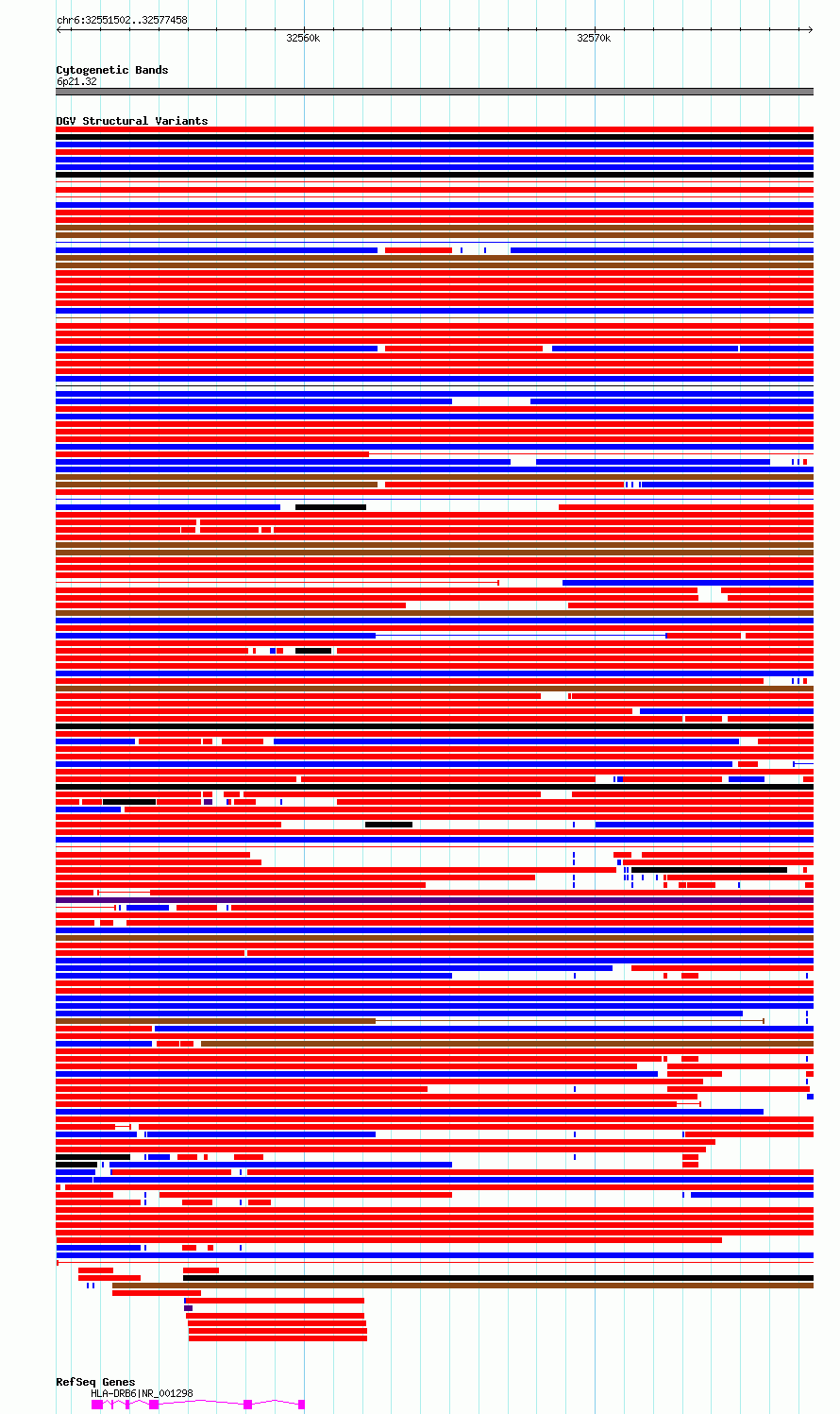Variant DetailsVariant: essv6794640| Internal ID | 10198718 | | Landmark | | | Location Information | | | Cytoband | 6p21.32 | | Allele length | | Assembly | Allele length | | hg38 | 25957 | | hg19 | 25957 |