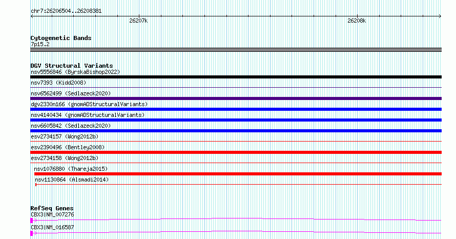 | | Variant Type | CNV deletion | | Copy Number | | | Allele State | | | Allele Origin | | | Probe Count | | | Validation Flag | | | Merged Status | S | | Merged Variants | esv2734157, esv2734158 | | Supporting Variants | | | Samples | SSM071 | | Known Genes | CBX3 | | Method | Sequencing | | Analysis | Breakdancer:4 times standard deviation,VariationHunter:4 times standard deviation and at least 3 supportting reads | | Platform | Illumina HiSeq 2000 | | Comments | | | Reference | Wong_et_al_2012b | | Pubmed ID | 23290073 | | Accession Number(s) | essv6794888