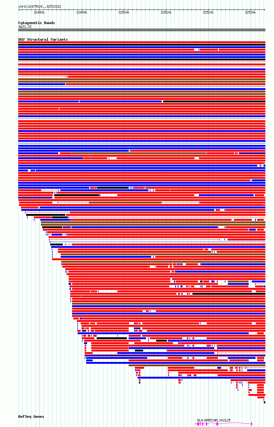 Variant DetailsVariant: essv6798795| Internal ID | 10204704 | | Landmark | | | Location Information | | | Cytoband | 6p21.32 | | Allele length | | Assembly | Allele length | | hg38 | 58298 | | hg19 | 58298 |