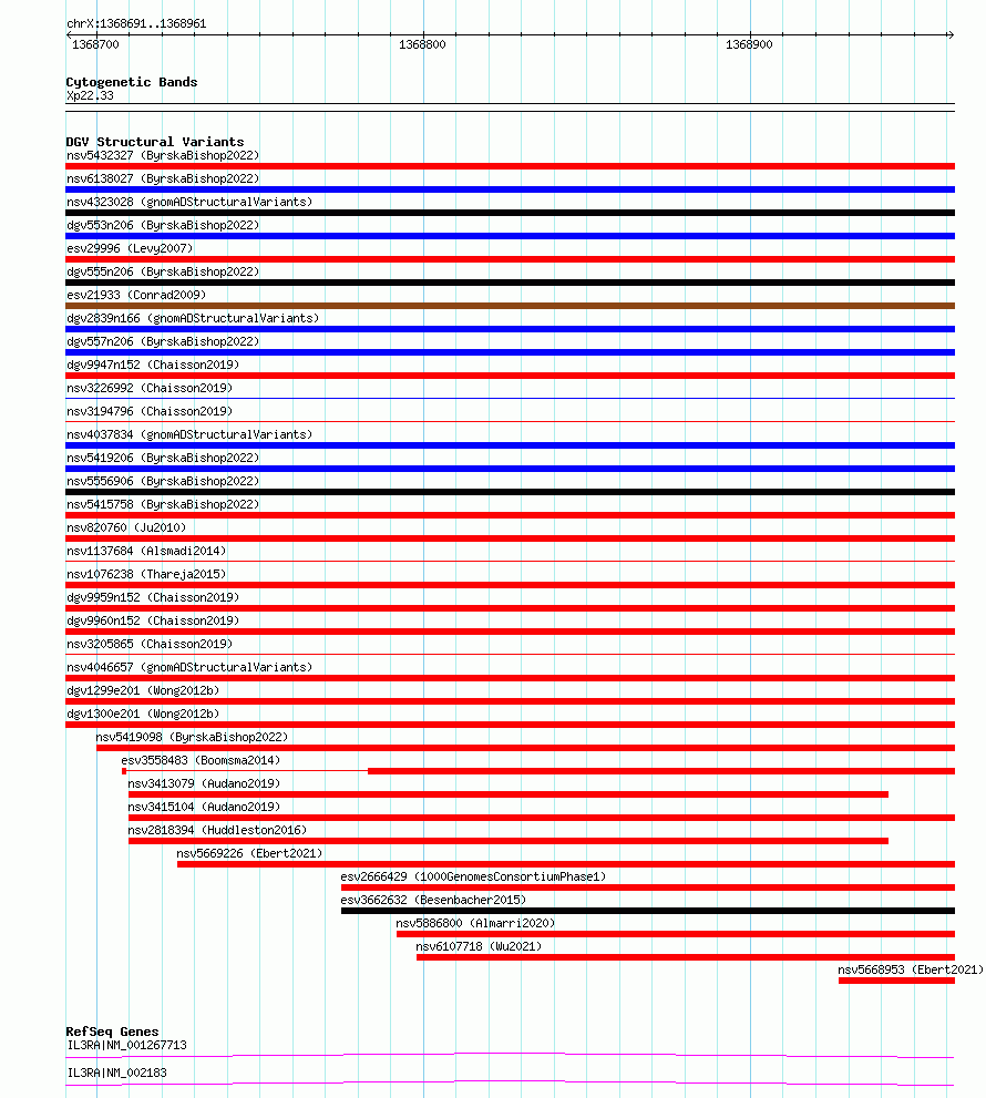 Variant DetailsVariant: essv6799378| Internal ID | 10203661 | | Landmark | | | Location Information | | | Cytoband | Xp22.33 | | Allele length | | Assembly | Allele length | | hg38 | 271 | | hg19 | 271 |