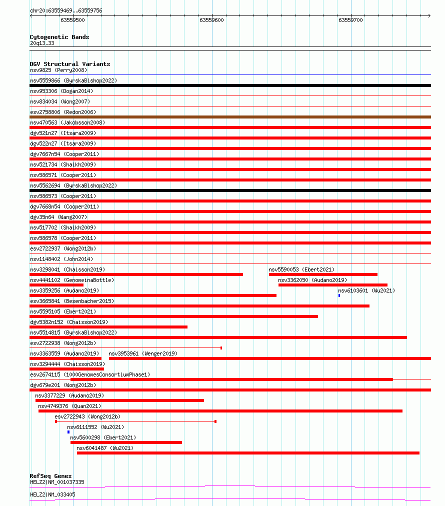Variant DetailsVariant: essv6801228| Internal ID | 10204657 | | Landmark | | | Location Information | | | Cytoband | 20q13.33 | | Allele length | | Assembly | Allele length | | hg38 | 288 | | hg19 | 288 |