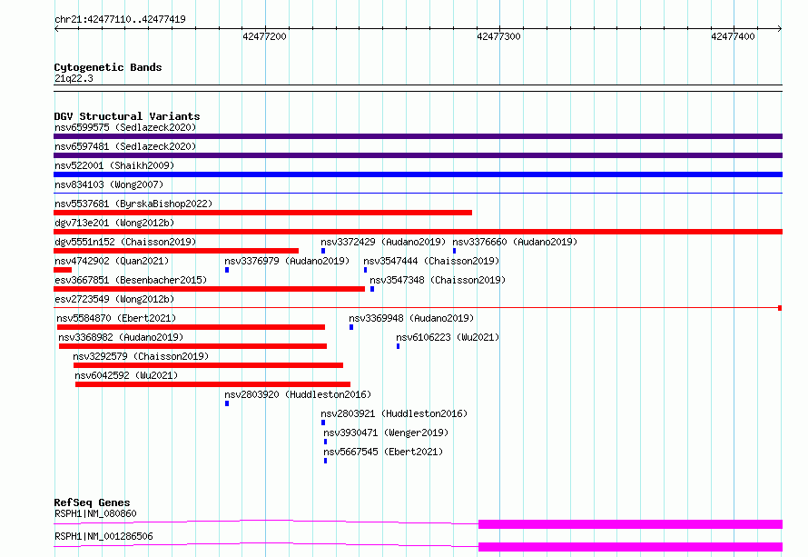 | | Variant Type | CNV deletion | | Copy Number | | | Allele State | | | Allele Origin | | | Probe Count | | | Validation Flag | | | Merged Status | S | | Merged Variants | esv2723549, esv2723548 | | Supporting Variants | | | Samples | SSM072 | | Known Genes | RSPH1 | | Method | Sequencing | | Analysis | Breakdancer:4 times standard deviation,VariationHunter:4 times standard deviation and at least 3 supportting reads | | Platform | Illumina HiSeq 2000 | | Comments | | | Reference | Wong_et_al_2012b | | Pubmed ID | 23290073 | | Accession Number(s) | essv6801544