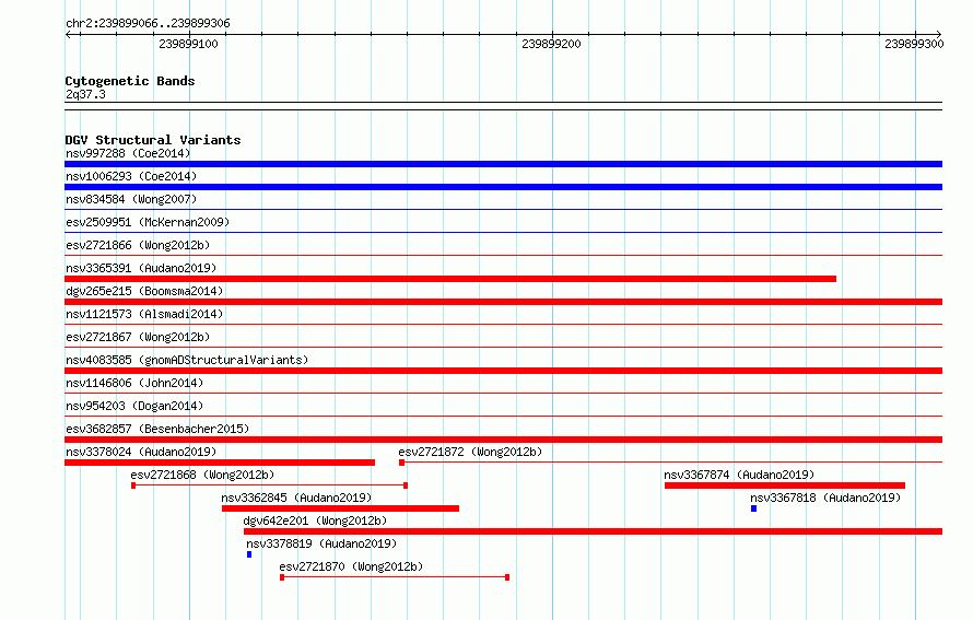Variant DetailsVariant: essv6801975| Internal ID | 9860119 | | Landmark | | | Location Information | | | Cytoband | 2q37.3 | | Allele length | | Assembly | Allele length | | hg38 | 241 | | hg19 | 241 |