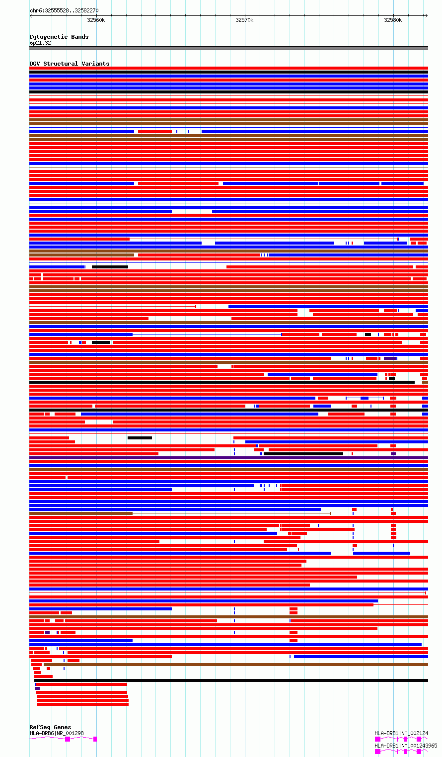 Variant DetailsVariant: essv6802563| Internal ID | 10207335 | | Landmark | | | Location Information | | | Cytoband | 6p21.32 | | Allele length | | Assembly | Allele length | | hg38 | 26743 | | hg19 | 26743 |