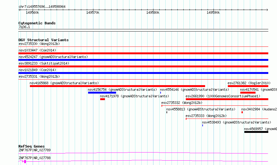 Variant DetailsVariant: essv6802860| Internal ID | 9858412 | | Landmark | | | Location Information | | | Cytoband | 7q36.1 | | Allele length | | Assembly | Allele length | | hg38 | 41269 | | hg19 | 41269 |