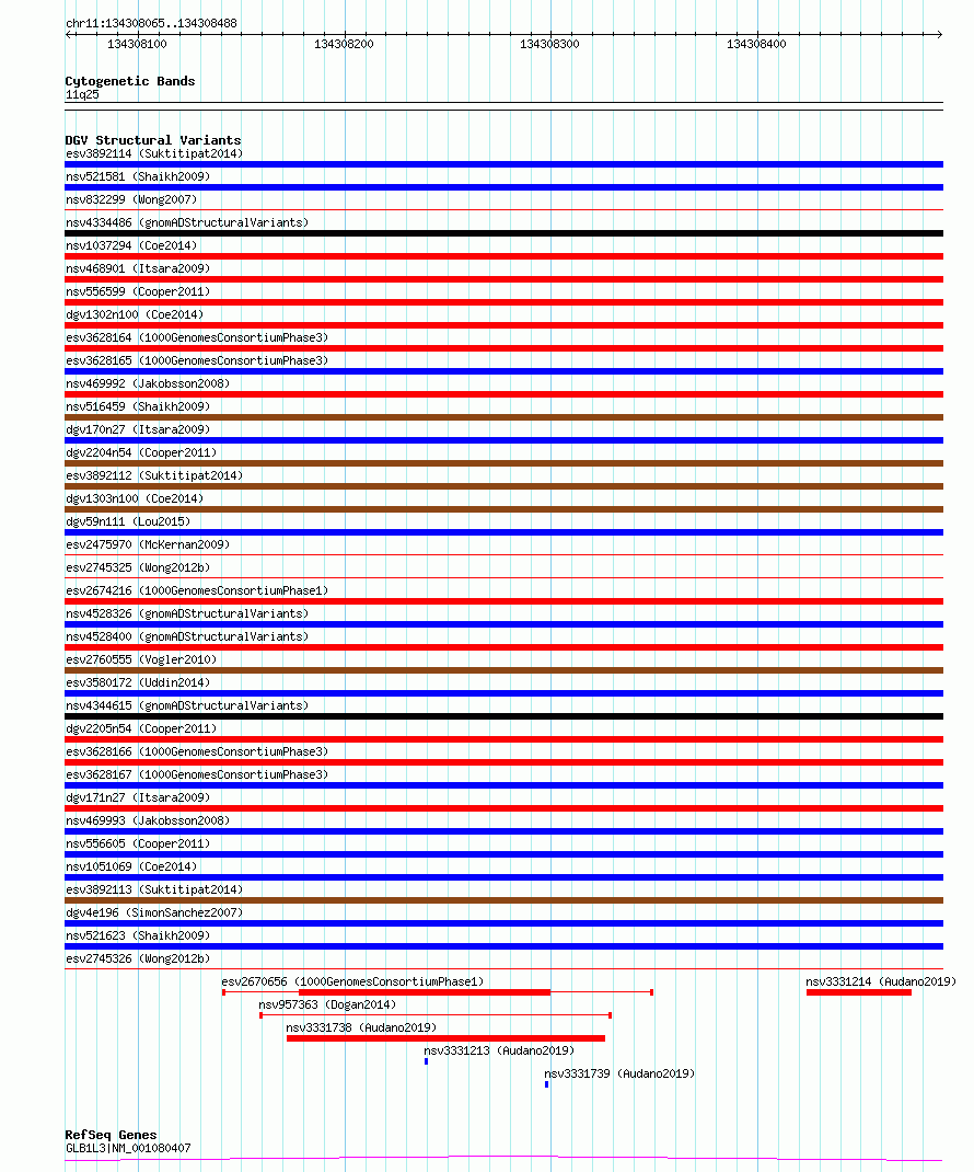 Variant DetailsVariant: essv6803462| Internal ID | 9859333 | | Landmark | | | Location Information | | | Cytoband | 11q25 | | Allele length | | Assembly | Allele length | | hg38 | 424 | | hg19 | 424 |