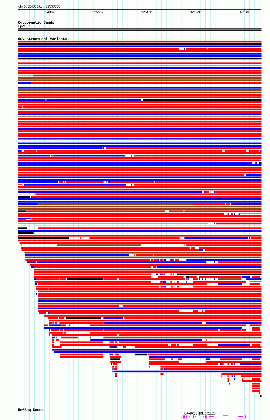 Variant DetailsVariant: essv6805375| Internal ID | 10209570 | | Landmark | | | Location Information | | | Cytoband | 6p21.32 | | Allele length | | Assembly | Allele length | | hg38 | 49668 | | hg19 | 49668 |