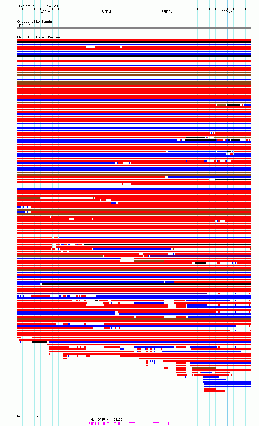 Variant DetailsVariant: essv6805391| Internal ID | 10209557 | | Landmark | | | Location Information | | | Cytoband | 6p21.32 | | Allele length | | Assembly | Allele length | | hg38 | 38625 | | hg19 | 38625 |