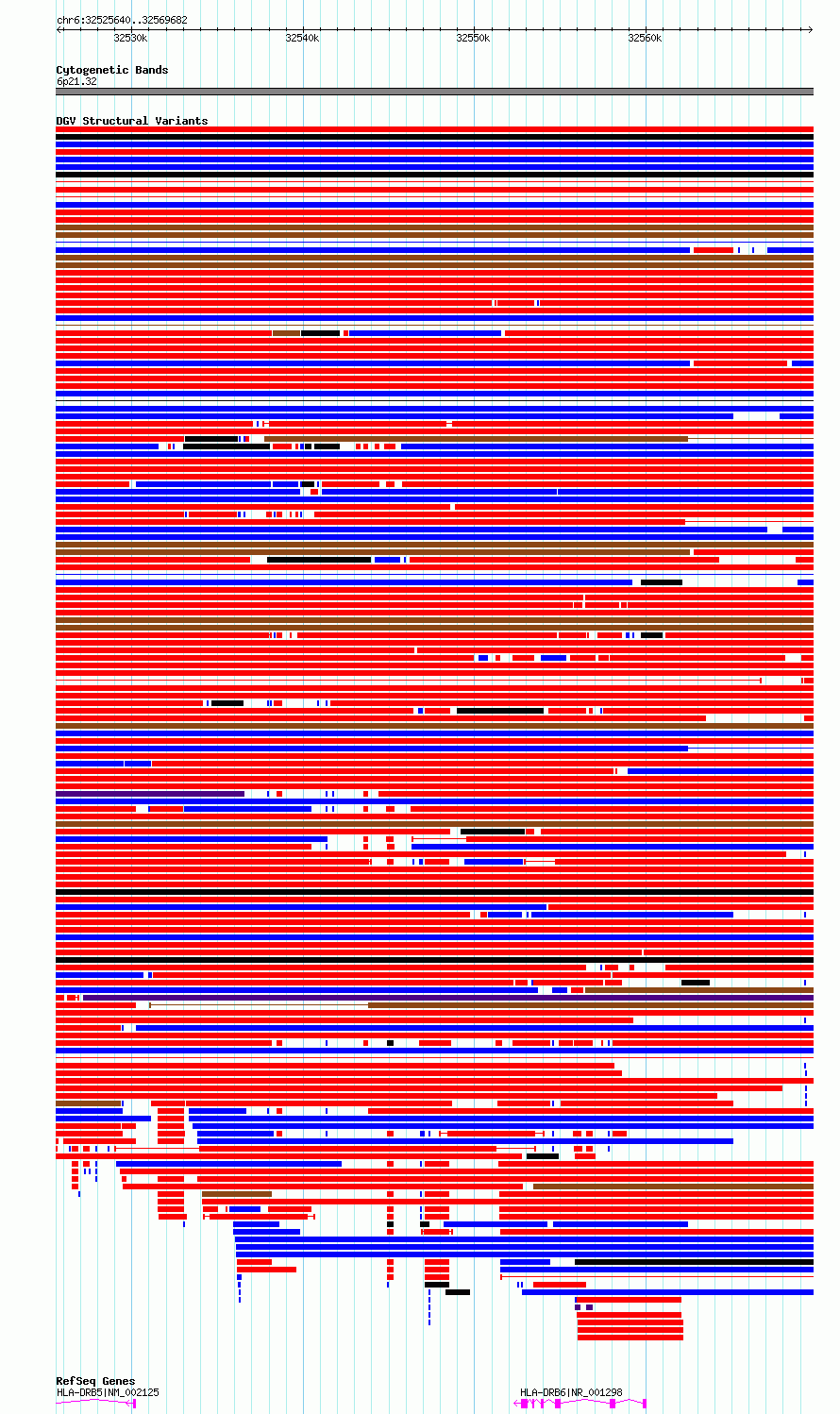 Variant DetailsVariant: essv6805403| Internal ID | 10209546 | | Landmark | | | Location Information | | | Cytoband | 6p21.32 | | Allele length | | Assembly | Allele length | | hg38 | 44043 | | hg19 | 44043 |