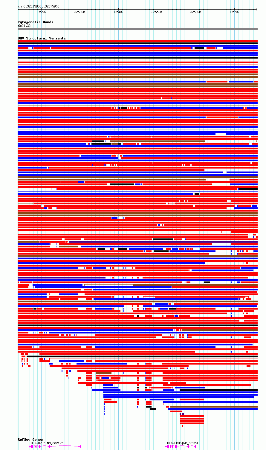 Variant DetailsVariant: essv6805414| Internal ID | 10209536 | | Landmark | | | Location Information | | | Cytoband | 6p21.32 | | Allele length | | Assembly | Allele length | | hg38 | 61954 | | hg19 | 61954 |