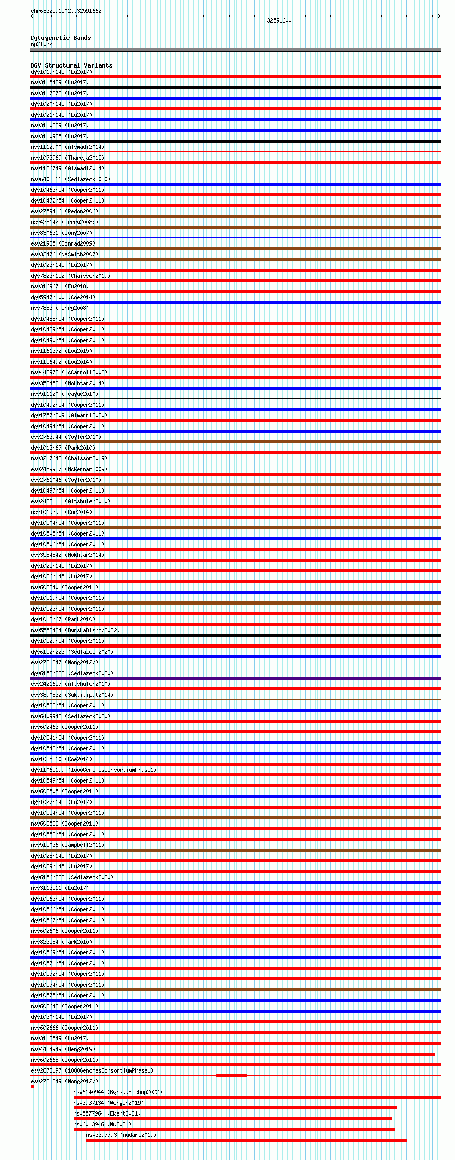 Variant DetailsVariant: essv6805429| Internal ID | 10209522 | | Landmark | | | Location Information | | | Cytoband | 6p21.32 | | Allele length | | Assembly | Allele length | | hg38 | 161 | | hg19 | 161 |