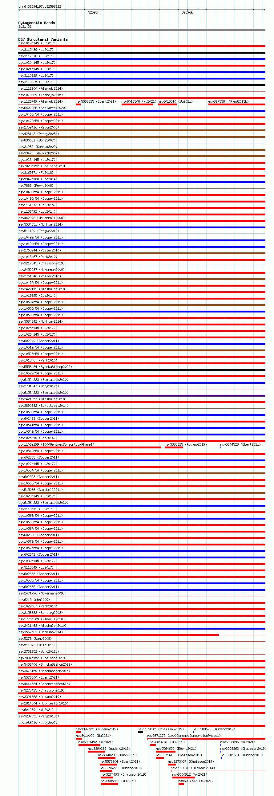 Variant DetailsVariant: essv6805430| Internal ID | 10209521 | | Landmark | | | Location Information | | | Cytoband | 6p21.32 | | Allele length | | Assembly | Allele length | | hg38 | 2626 | | hg19 | 2626 |
