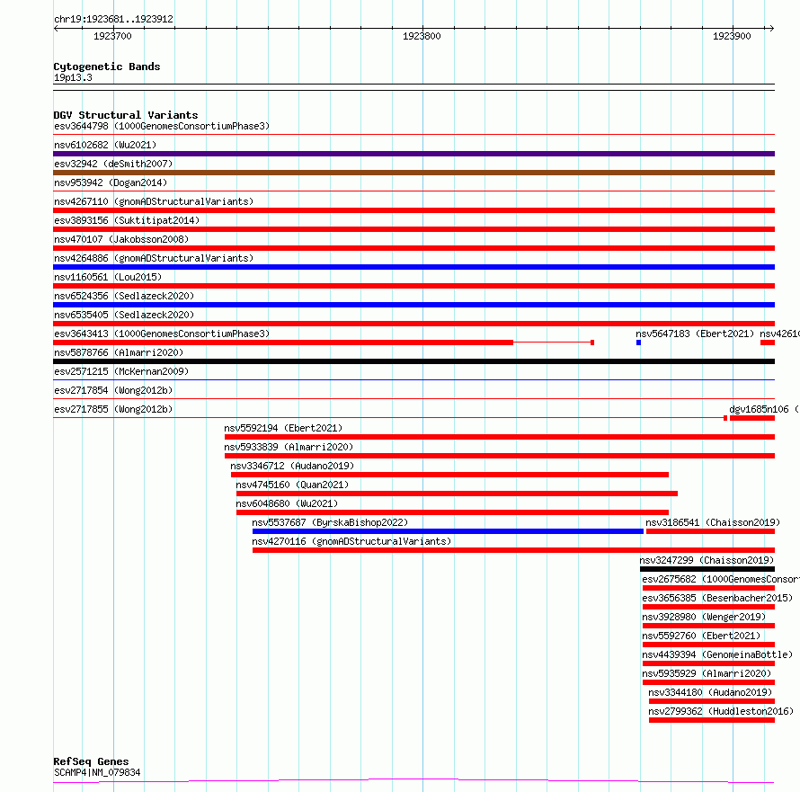 Variant DetailsVariant: essv6807114| Internal ID | 10208407 | | Landmark | | | Location Information | | | Cytoband | 19p13.3 | | Allele length | | Assembly | Allele length | | hg38 | 232 | | hg19 | 232 |