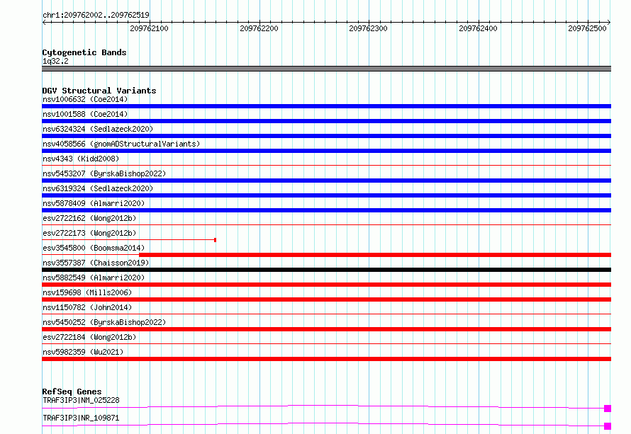 Variant DetailsVariant: essv6807508| Internal ID | 10211831 | | Landmark | | | Location Information | | | Cytoband | 1q32.2 | | Allele length | | Assembly | Allele length | | hg38 | 518 | | hg19 | 518 |