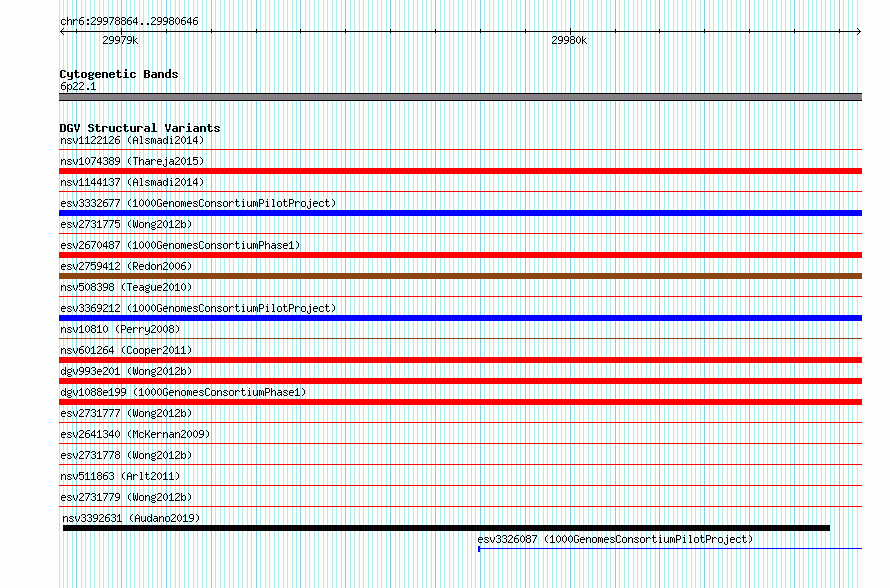 Variant DetailsVariant: essv6808348| Internal ID | 9865902 | | Landmark | | | Location Information | | | Cytoband | 6p22.1 | | Allele length | | Assembly | Allele length | | hg38 | 1783 | | hg19 | 1783 |