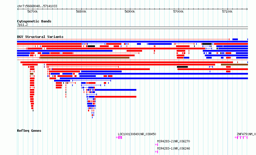 Variant DetailsVariant: essv6808623| Internal ID | 9863479 | | Landmark | | | Location Information | | | Cytoband | 7p11.2 | | Allele length | | Assembly | Allele length | | hg38 | 472986 | | hg19 | 473000 |