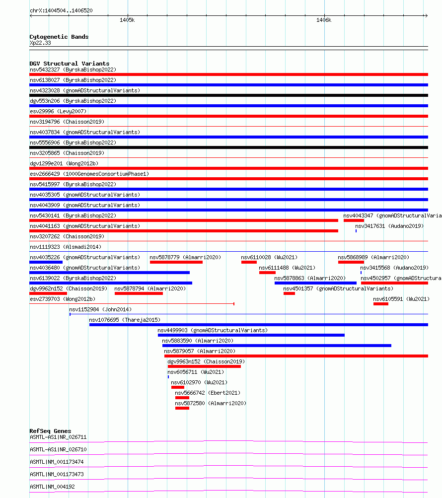 Variant DetailsVariant: essv6808773| Internal ID | 10210301 | | Landmark | | | Location Information | | | Cytoband | Xp22.33 | | Allele length | | Assembly | Allele length | | hg38 | 2017 | | hg19 | 2017 |