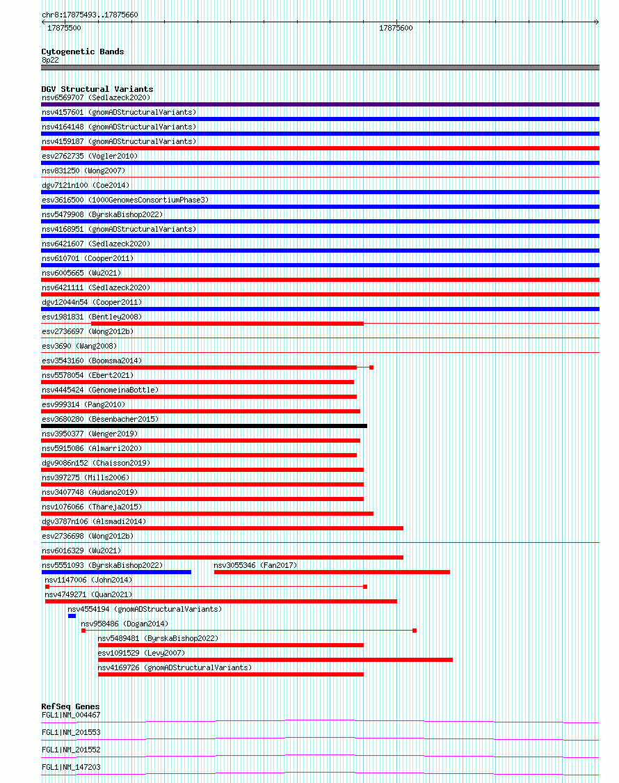 Variant DetailsVariant: essv6808870| Internal ID | 10210388 | | Landmark | | | Location Information | | | Cytoband | 8p22 | | Allele length | | Assembly | Allele length | | hg38 | 168 | | hg19 | 168 |