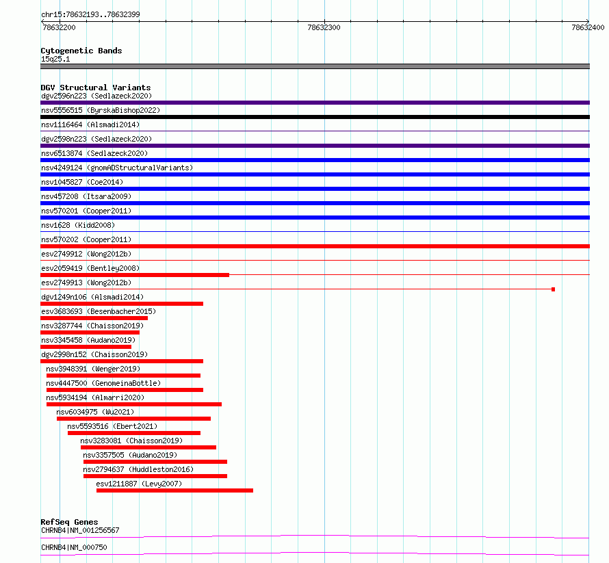 | | Variant Type | CNV deletion | | Copy Number | | | Allele State | | | Allele Origin | | | Probe Count | | | Validation Flag | | | Merged Status | S | | Merged Variants | esv2749912, esv2749913 | | Supporting Variants | | | Samples | SSM009 | | Known Genes | CHRNB4 | | Method | Sequencing | | Analysis | Breakdancer:4 times standard deviation,VariationHunter:4 times standard deviation and at least 3 supportting reads | | Platform | Illumina HiSeq 2000 | | Comments | | | Reference | Wong_et_al_2012b | | Pubmed ID | 23290073 | | Accession Number(s) | essv6809520