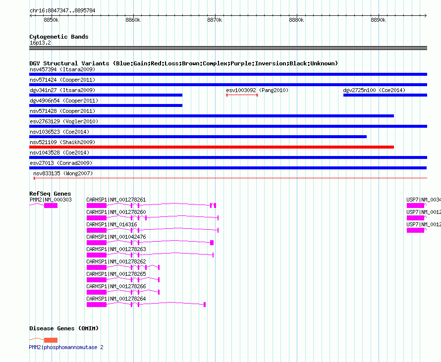 | Known Genes | CARHSP1, PMM2, USP7 |