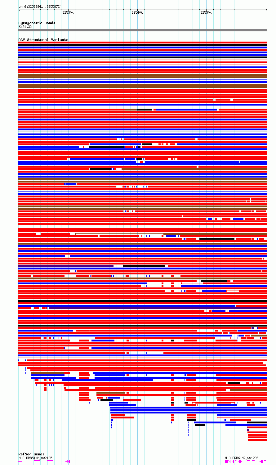 Variant DetailsVariant: essv6814297| Internal ID | 10216349 | | Landmark | | | Location Information | | | Cytoband | 6p21.32 | | Allele length | | Assembly | Allele length | | hg38 | 35884 | | hg19 | 35884 |