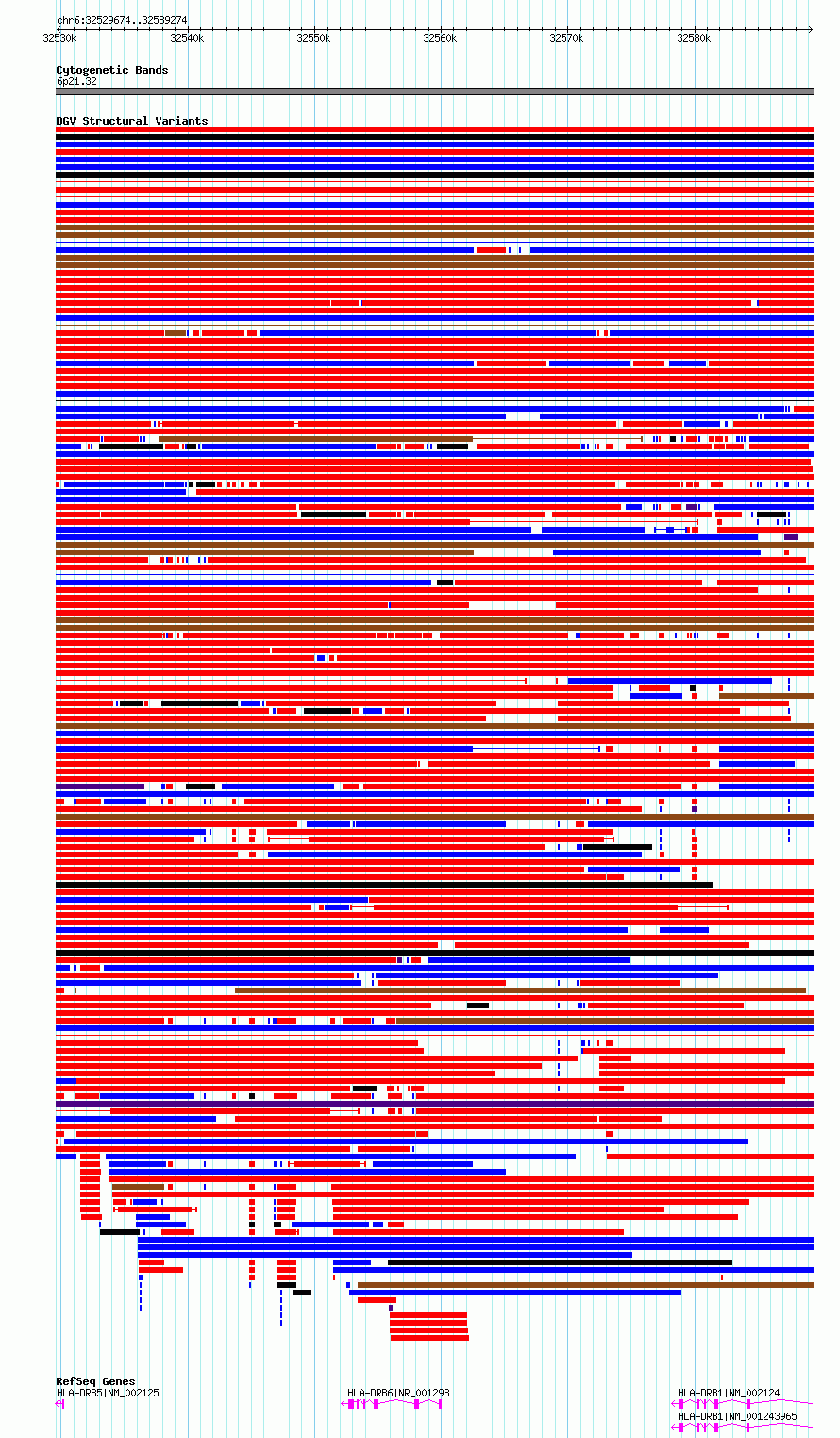 Variant DetailsVariant: essv6814305| Internal ID | 10216356 | | Landmark | | | Location Information | | | Cytoband | 6p21.32 | | Allele length | | Assembly | Allele length | | hg38 | 59601 | | hg19 | 59601 |