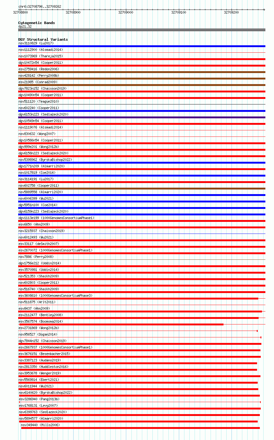 Variant DetailsVariant: essv6814326| Internal ID | 10216375 | | Landmark | | | Location Information | | | Cytoband | 6p21.32 | | Allele length | | Assembly | Allele length | | hg38 | 467 | | hg19 | 467 |