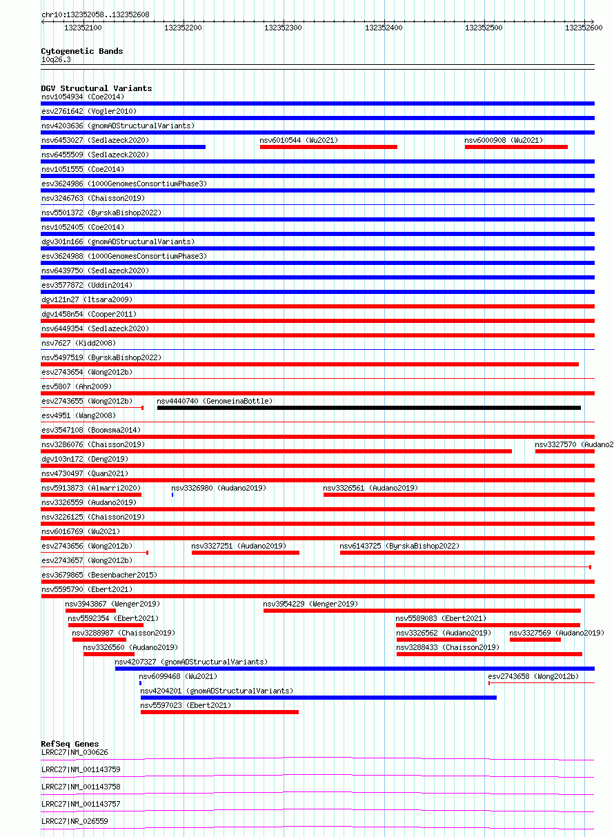 Variant DetailsVariant: essv6815263| Internal ID | 10217219 | | Landmark | | | Location Information | | | Cytoband | 10q26.3 | | Allele length | | Assembly | Allele length | | hg38 | 551 | | hg19 | 551 |