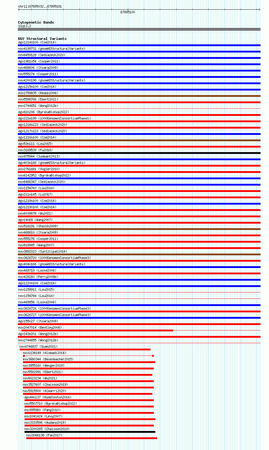 Variant DetailsVariant: essv6815366| Internal ID | 10217310 | | Landmark | | | Location Information | | | Cytoband | 11q13.2 | | Allele length | | Assembly | Allele length | | hg38 | 150 | | hg19 | 150 |