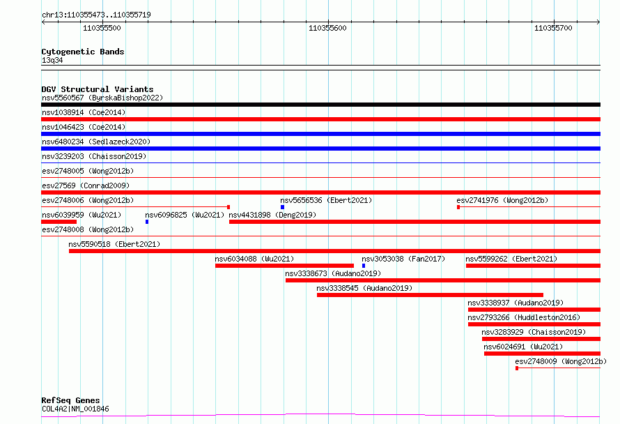 | | Variant Type | CNV deletion | | Copy Number | | | Allele State | | | Allele Origin | | | Probe Count | | | Validation Flag | | | Merged Status | S | | Merged Variants | esv2748008, esv2748005 | | Supporting Variants | | | Samples | SSM077 | | Known Genes | COL4A2 | | Method | Sequencing | | Analysis | Breakdancer:4 times standard deviation,VariationHunter:4 times standard deviation and at least 3 supportting reads | | Platform | Illumina HiSeq 2000 | | Comments | | | Reference | Wong_et_al_2012b | | Pubmed ID | 23290073 | | Accession Number(s) | essv6815635