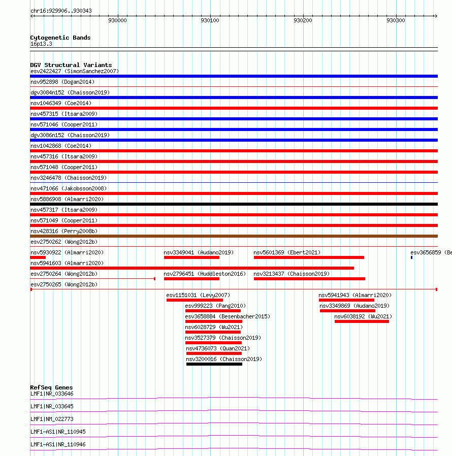 Variant DetailsVariant: essv6815842| Internal ID | 10217739 | | Landmark | | | Location Information | | | Cytoband | 16p13.3 | | Allele length | | Assembly | Allele length | | hg38 | 438 | | hg19 | 438 |