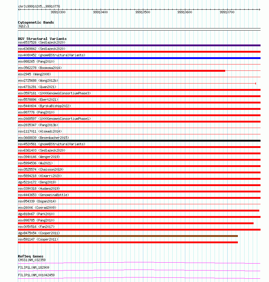Variant DetailsVariant: essv6817296| Internal ID | 10221797 | | Landmark | | | Location Information | | | Cytoband | 3q12.1 | | Allele length | | Assembly | Allele length | | hg38 | 572 | | hg19 | 572 |