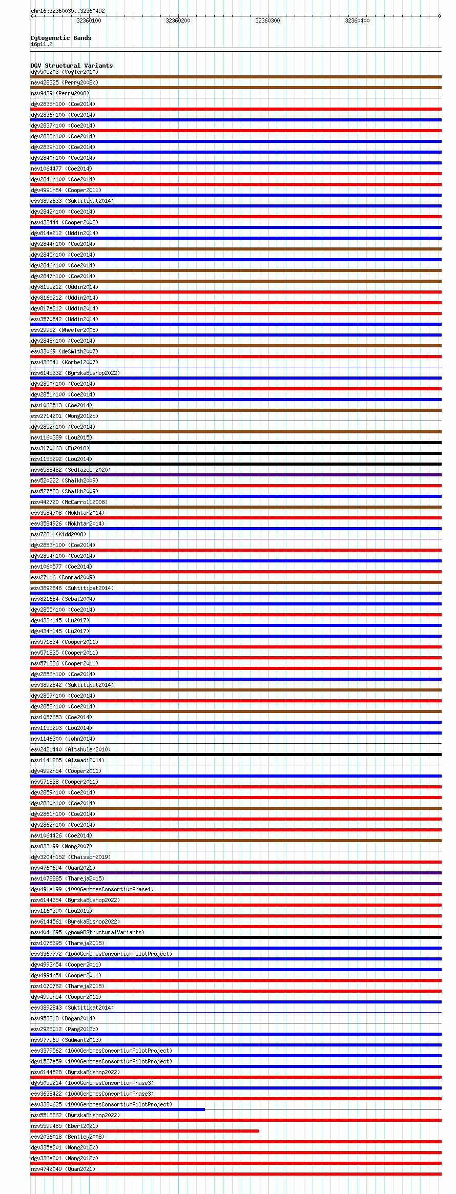 Variant DetailsVariant: essv6820292| Internal ID | 10219868 | | Landmark | | | Location Information | | | Cytoband | 16p11.2 | | Allele length | | Assembly | Allele length | | hg38 | 458 | | hg19 | 458 |
