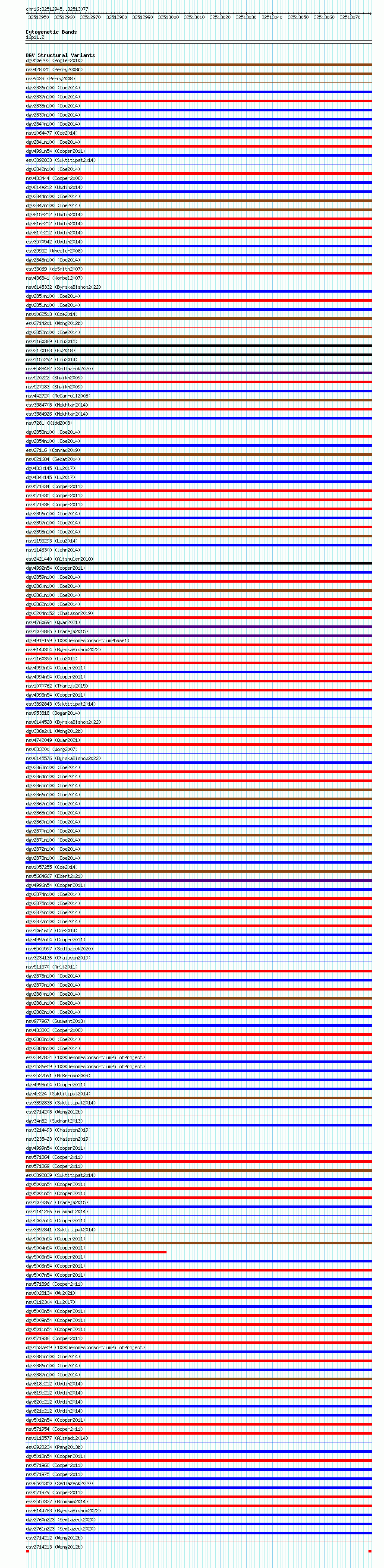 Variant DetailsVariant: essv6820294| Internal ID | 10219870 | | Landmark | | | Location Information | | | Cytoband | 16p11.2 | | Allele length | | Assembly | Allele length | | hg38 | 133 | | hg19 | 133 |