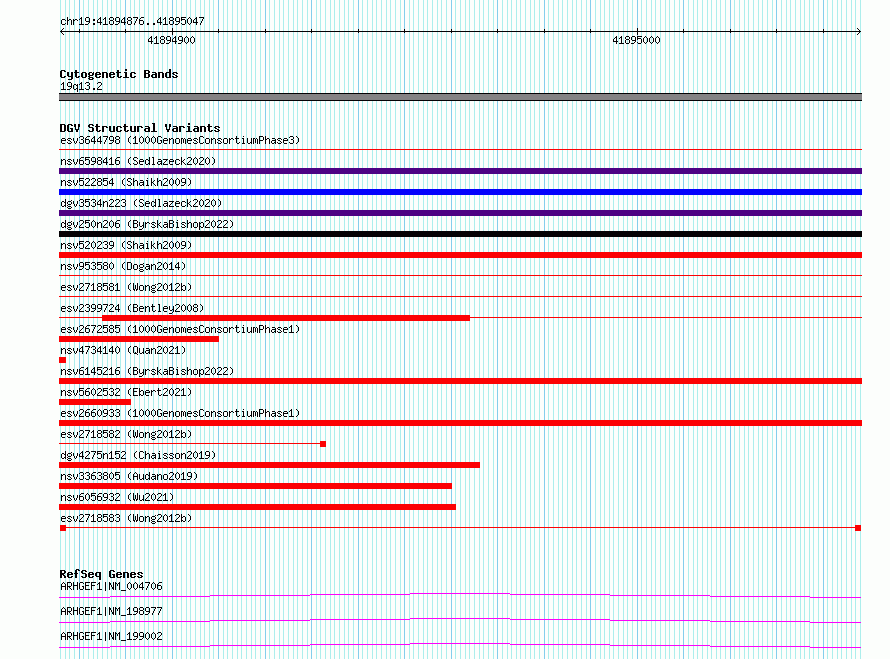 Variant DetailsVariant: essv6820911| Internal ID | 10220424 | | Landmark | | | Location Information | | | Cytoband | 19q13.2 | | Allele length | | Assembly | Allele length | | hg38 | 172 | | hg19 | 172 |