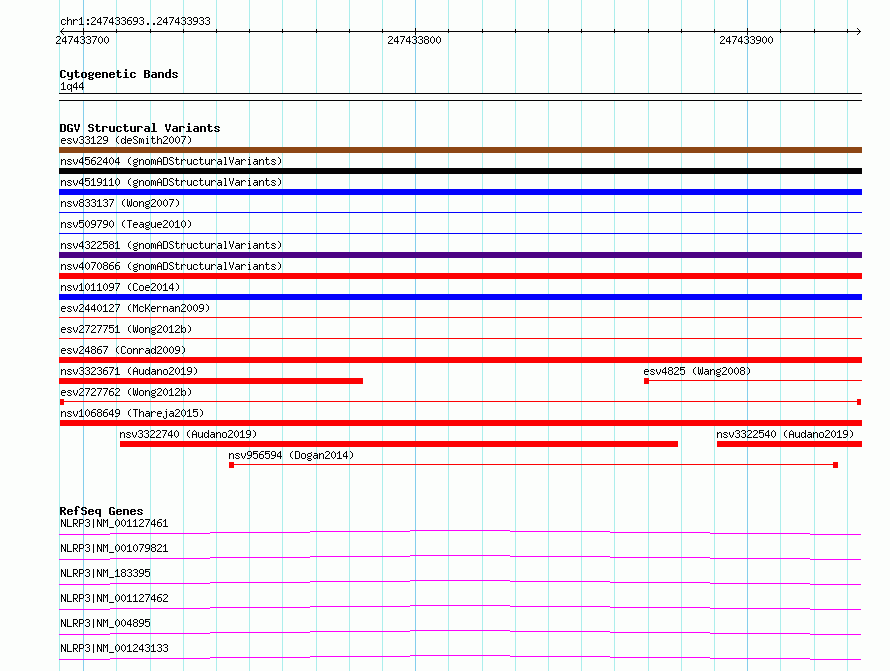 Variant DetailsVariant: essv6821394| Internal ID | 9876050 | | Landmark | | | Location Information | | | Cytoband | 1q44 | | Allele length | | Assembly | Allele length | | hg38 | 241 | | hg19 | 241 |